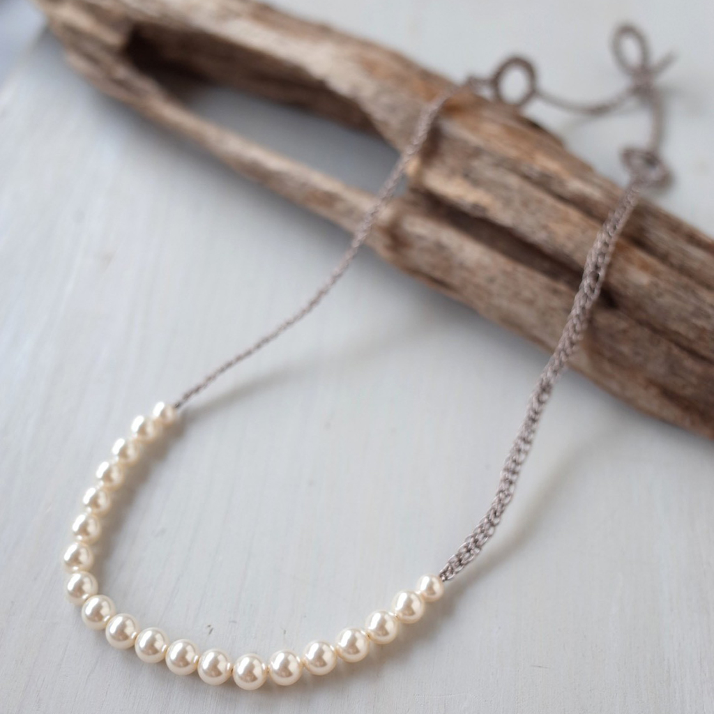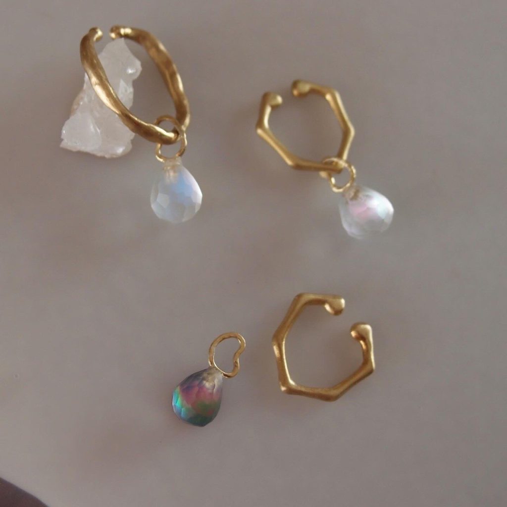 ガラス・貝・金属など自然素材を、優しいフォルムへ丁寧に加工。作り手の温もりを感じるアクセサリー。