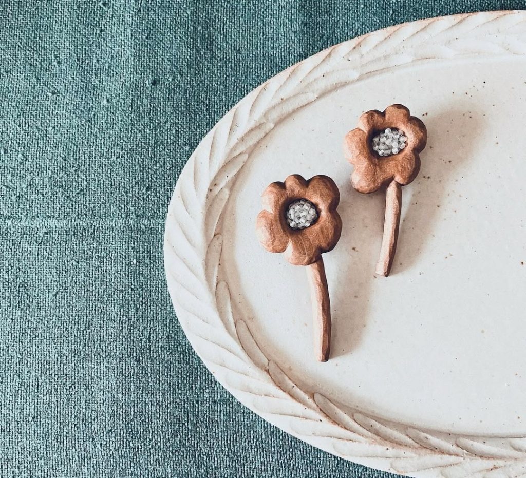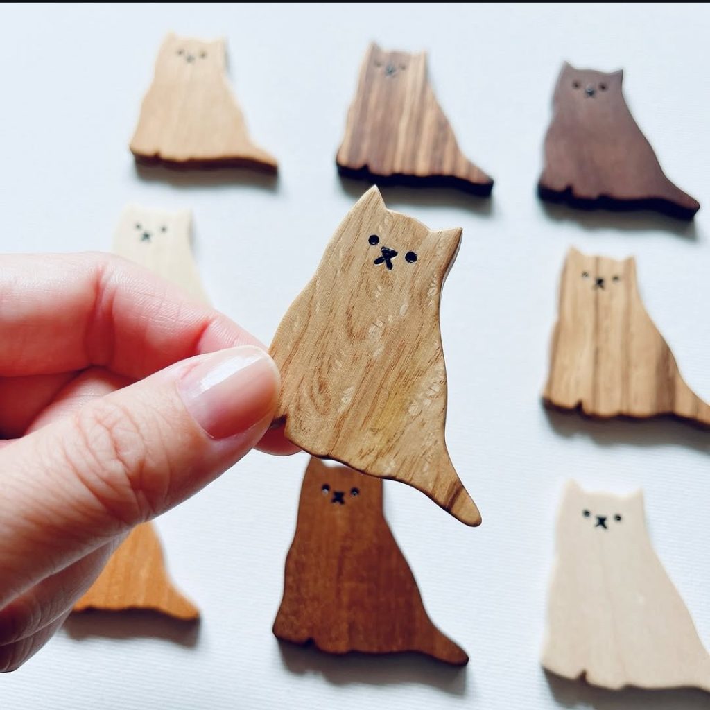 木を切り出し削り出して作る、あたたかみのあるアクセサリー。動物モチーフやビーズとの組み合わせも人気。