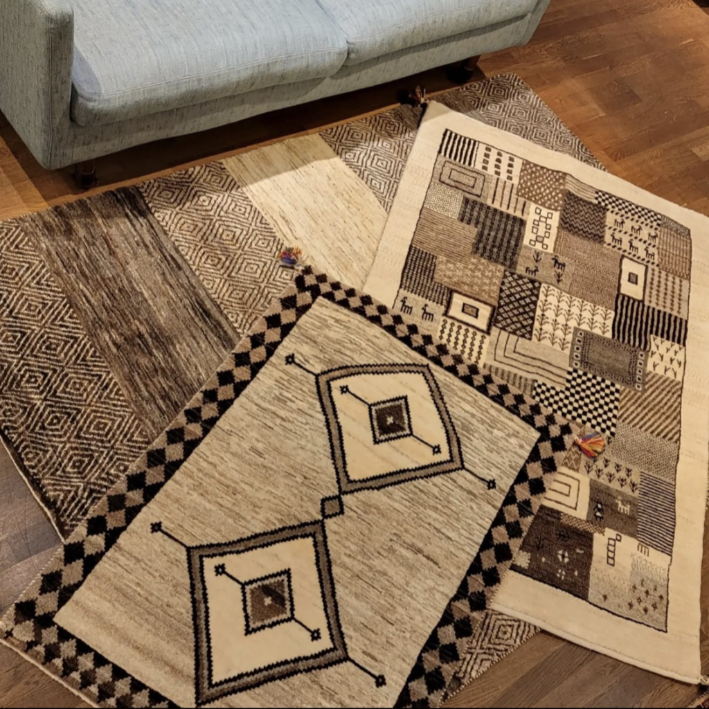 あたたかさとアートが息づく、イランの手織り絨毯「ギャッベ」 イランの遊牧民による伝統の手織り絨毯「ギャッベ」。砂漠の移動生活の中で生まれたギャッベは、ウール100%・草木染めの自然素材で作られています。