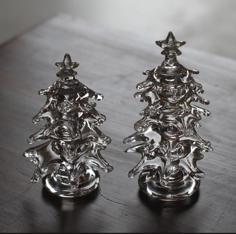 さらに今回は、クリスマスシーズンを華やかに彩る「ガラスのツリーオブジェ」も同時展開。透明感と光の反射が美しく、控えめな存在感ながらもインテリアに温かい表情を添えてくれます。