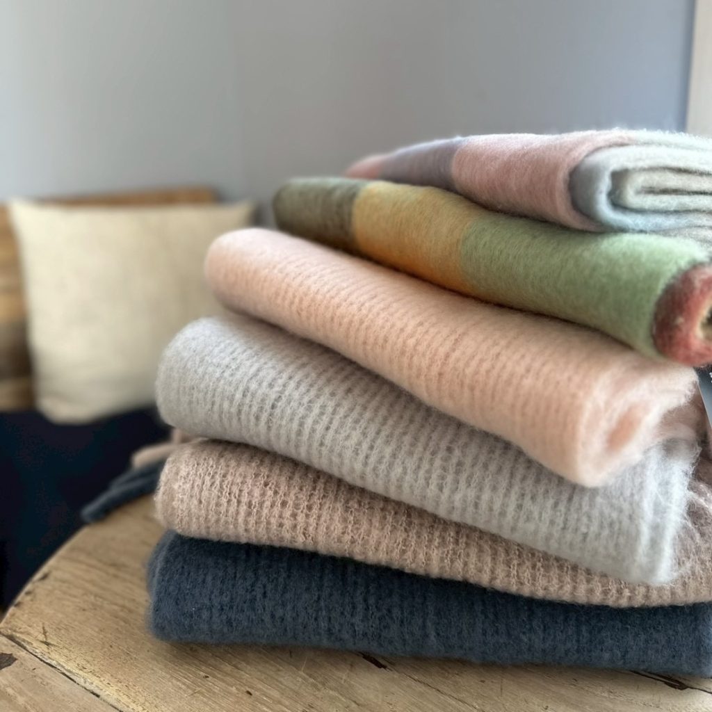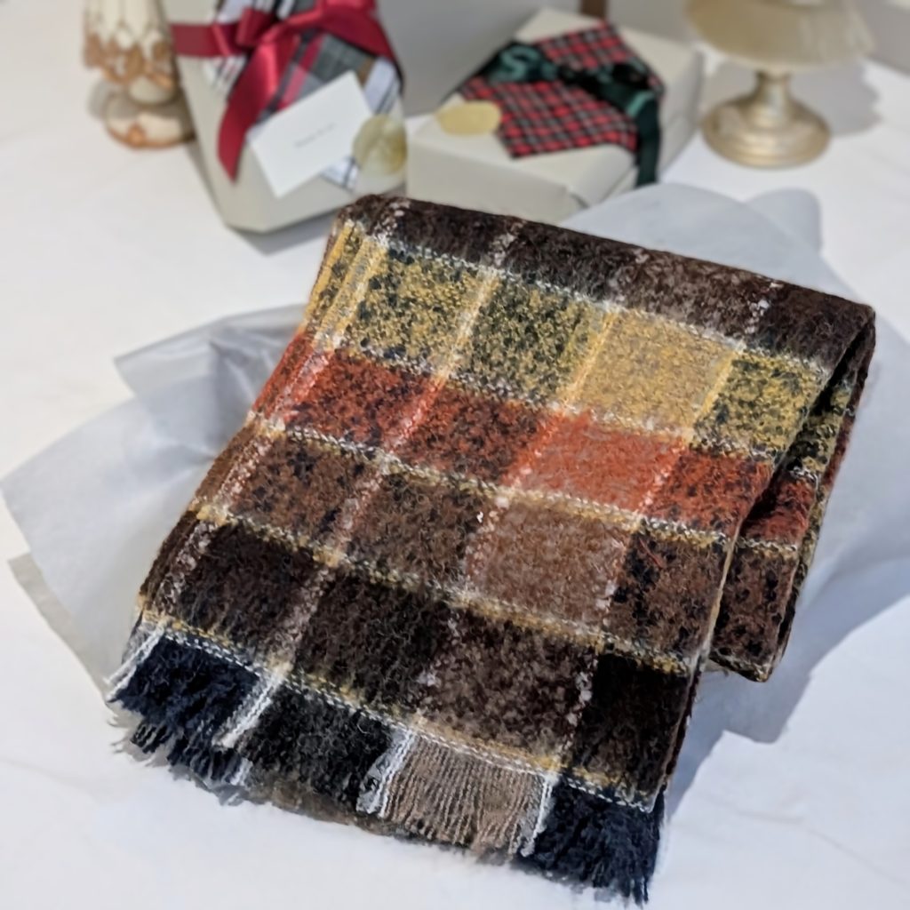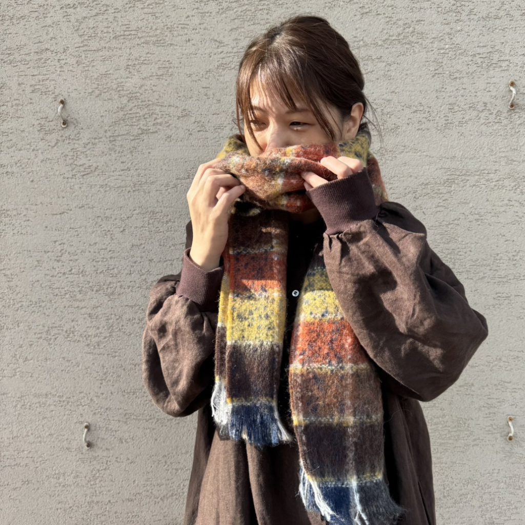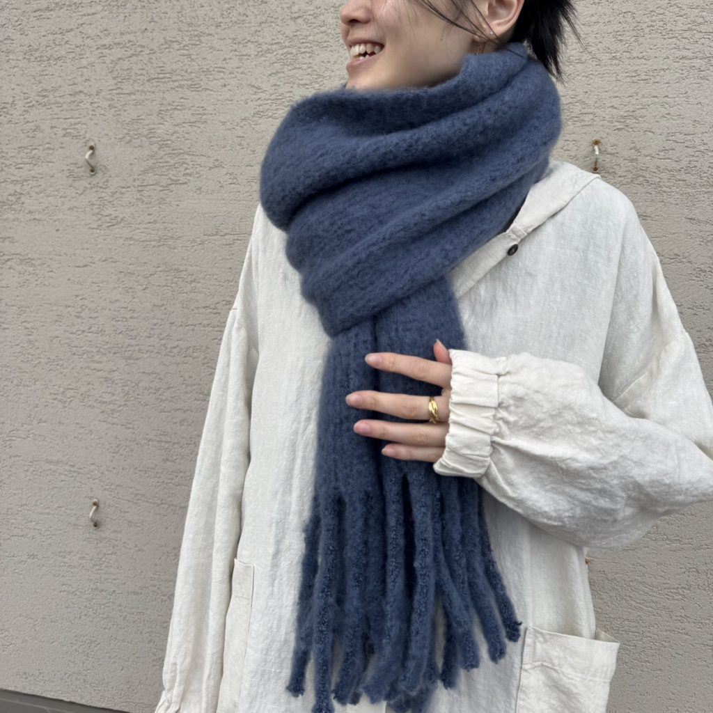 冬のギフトとして人気の高いフランス製ストールは、上質なモヘア素材を使用しており、ちくちくせず肌触りがとても柔らかいのが特徴です。軽くて暖かく、通勤やお出かけ、休日のカジュアルスタイルまで幅広く活躍します。
