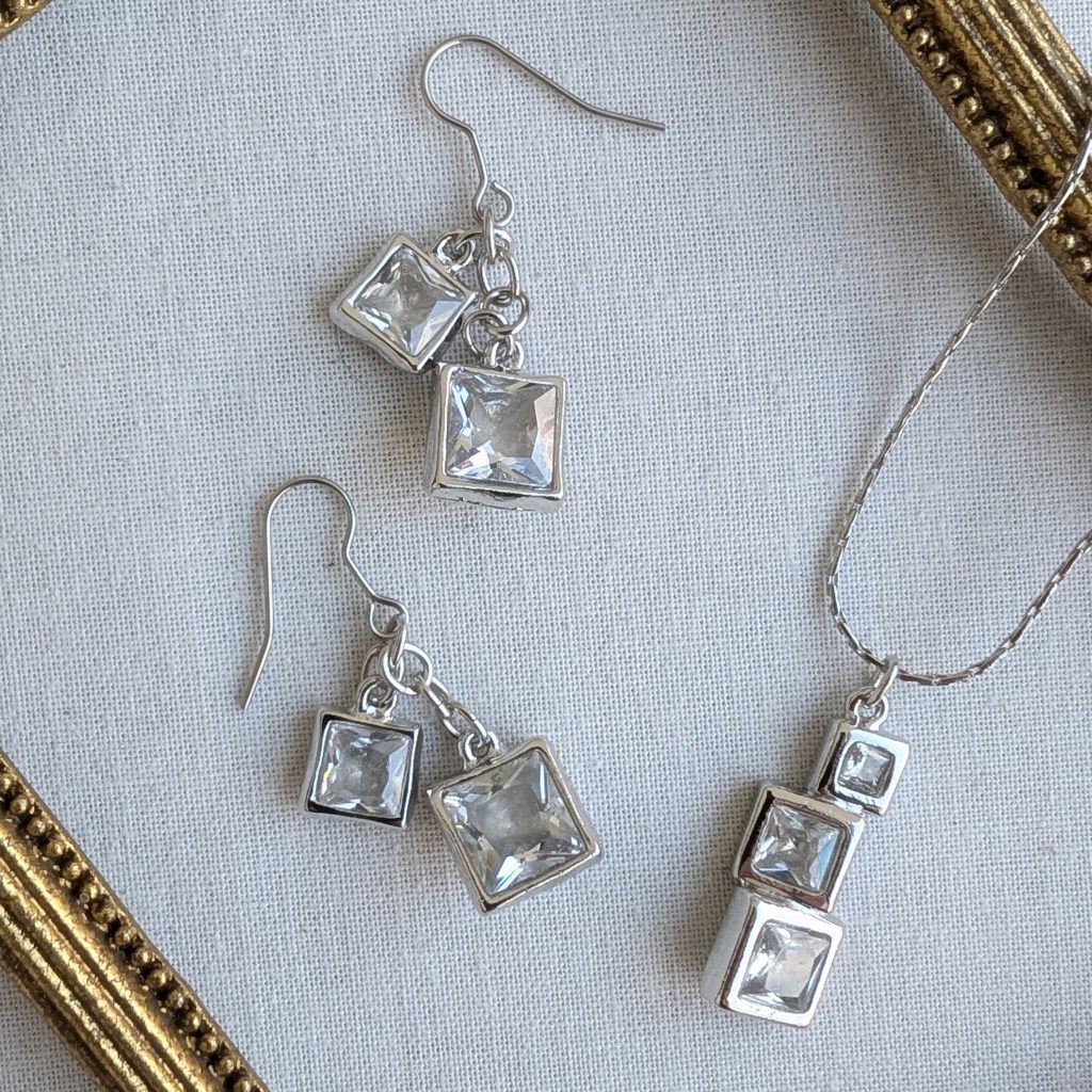 胸元と耳元に上品な輝きを添えるスクエアジルコニアシリーズは、シンプルながらも洗練された印象を与えるデザインが魅力。派手すぎず清楚にきらめくため、普段使いはもちろん、フォーマルなシーンにも自然と馴染みます。セットで身につければ、より統一感のある華やかなスタイルに仕上がる万能アクセサリーです。