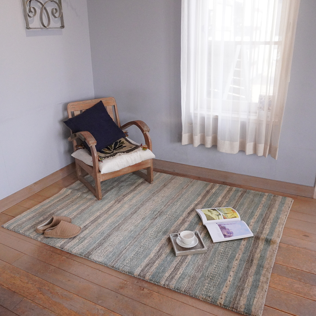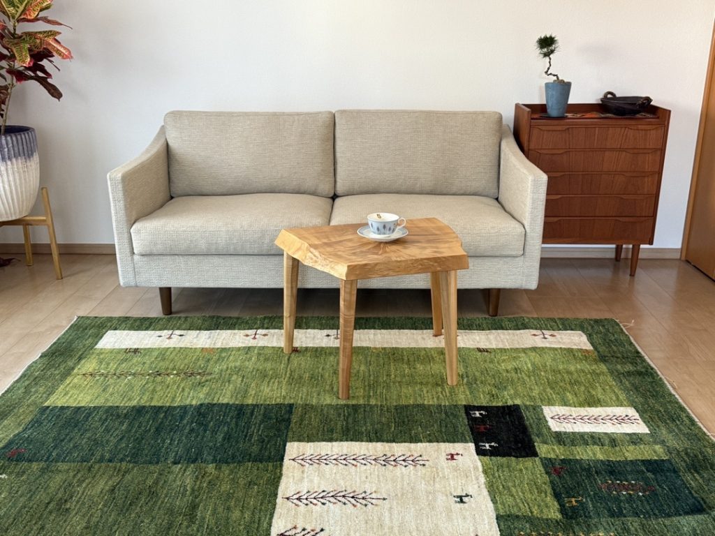 リビングサイズのギャッベは、一枚敷くだけで部屋全体の雰囲気を変えるほど存在感があります。特に天然ウールならではの厚みと柔らかな質感が魅力で、足元からじんわりとぬくもりが伝わり、家族が集まる空間を心地よく包み込みます。