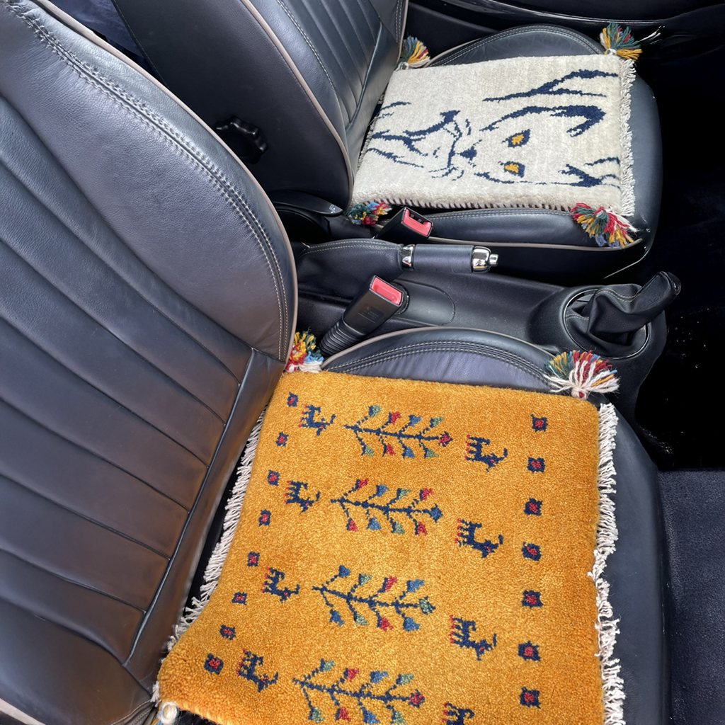 そんな時に役立つのが、ミニサイズのギャッベです。天然ウールならではの調湿性と保温性が、車内での快適さをしっかりサポートします。