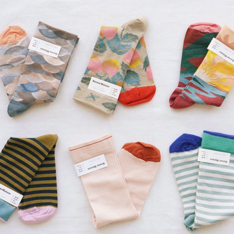 今回紹介したブランドの多くは、メンズソックスの展開もあります。シンプルな定番から個性的なデザインまで揃っているので、パートナーとお揃いで楽しむのもおすすめ。